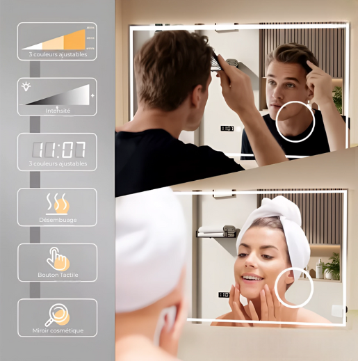 ◇ Double contrôle tactile (lumière + désembuage)