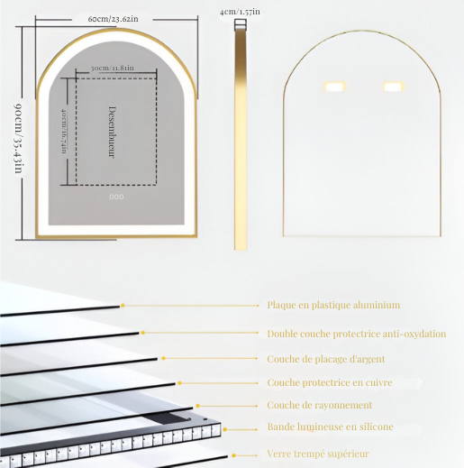 ◇ Finition or élégante, cadre en alliage d’aluminium + verre